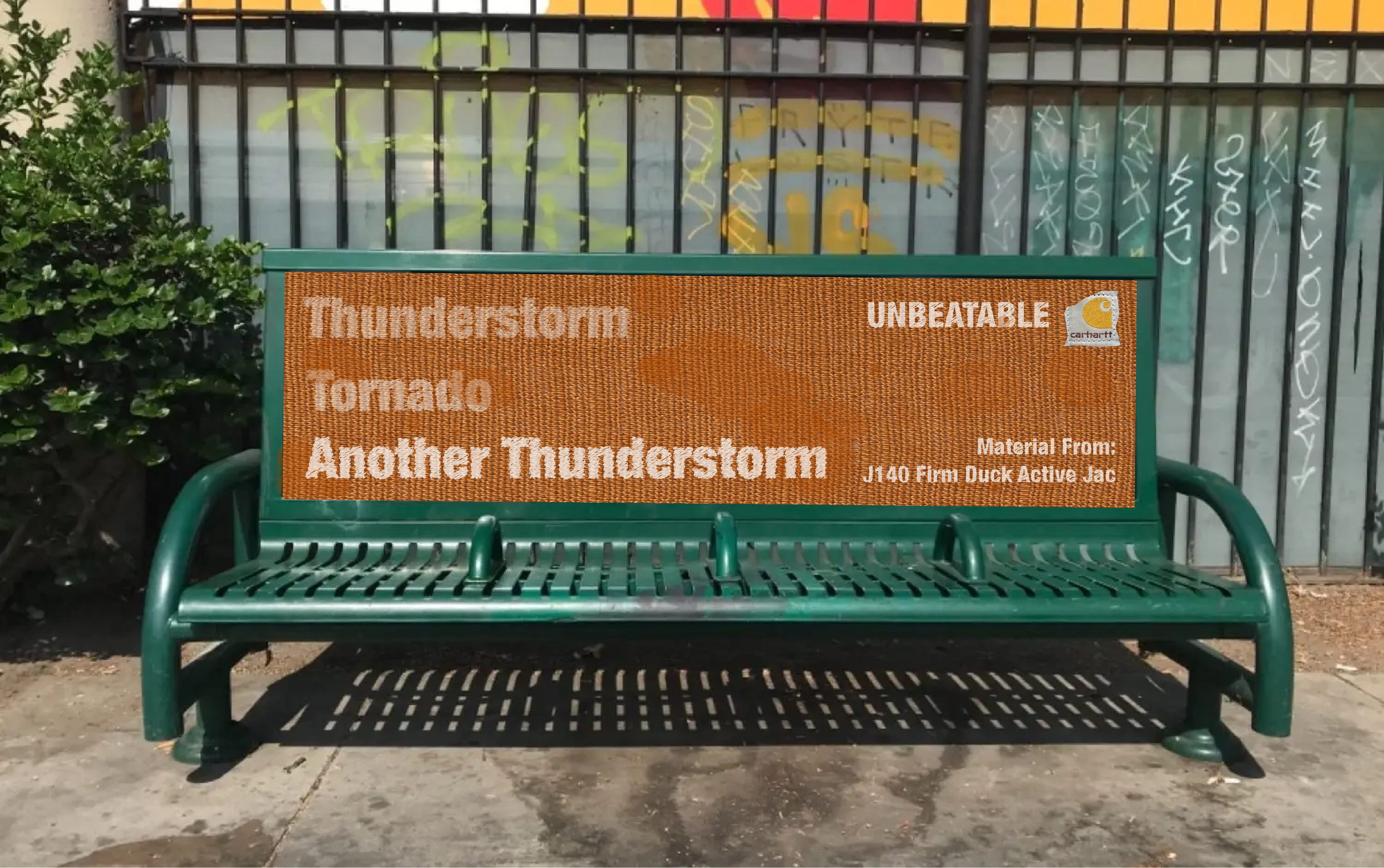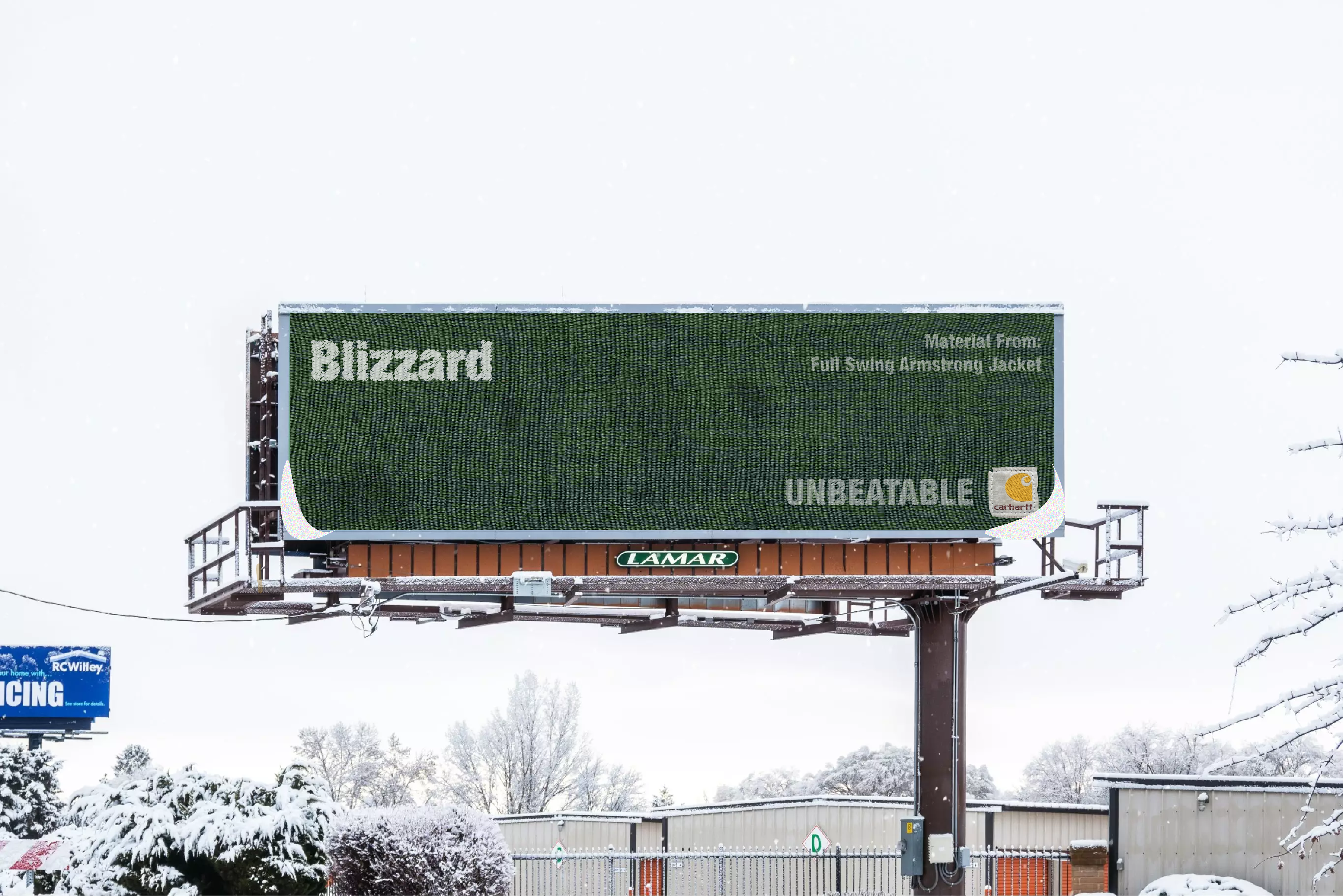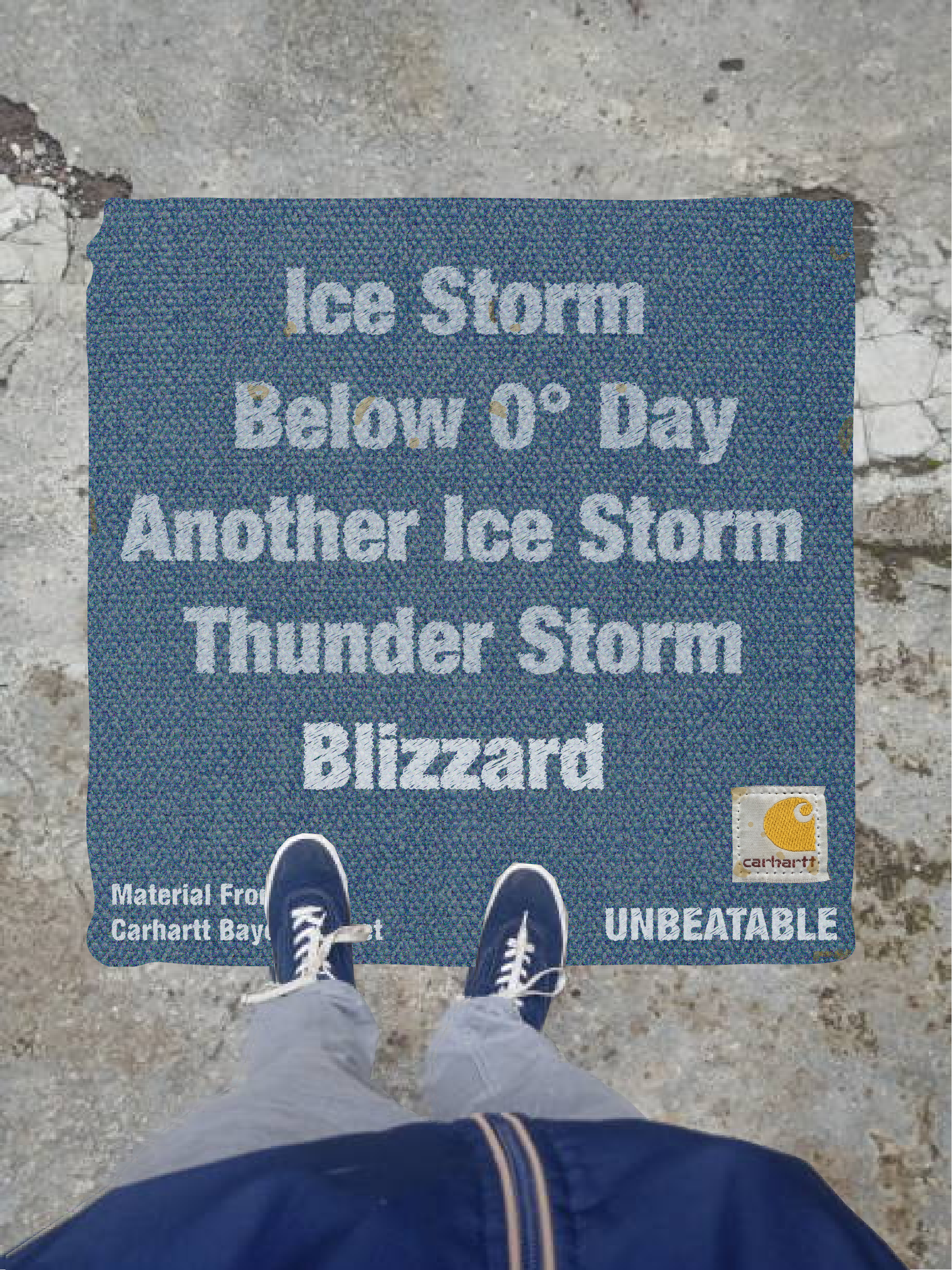Our Out Of Home Ads brings the fabric of the famous Carhartt jackets into the real world weather conditions. Real fabric will be plastered on bus stops, billboards, and sidewalks. What will come after is the documentation of weather events. From blizzards to thunderstorms to tornados, these weather events will be recorded through this advertisement.